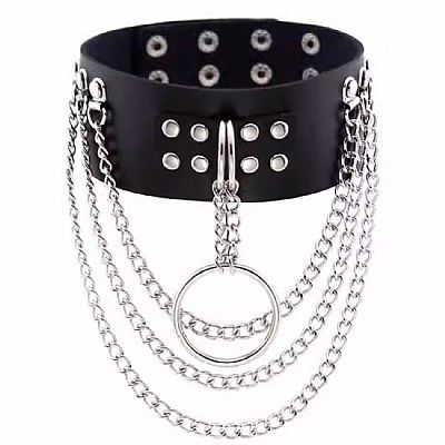 Coleira com Correntes - Choker Rebite - SI